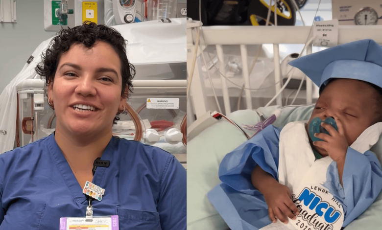 In a recent Instagram post, Genesis Ramprashad, a NICU nurse at Lenox Hill, shared that the team uses old medical supplies from the unit to create the tiny graduation outfits — materials that can feel overwhelming or even intimidating to parents early in their NICU journey.